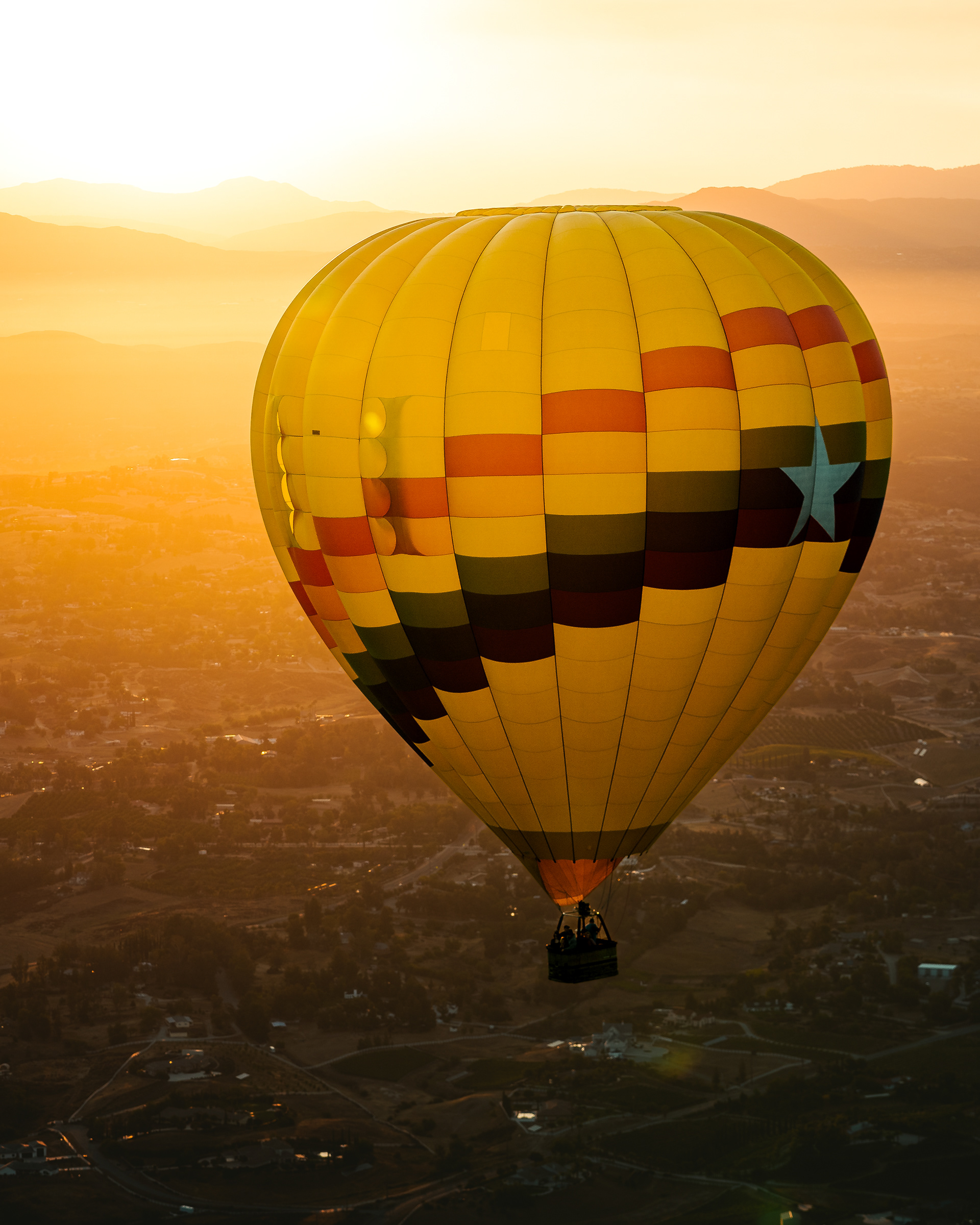 During a breathtaking sunrise in Temecula, I had the incredible opportunity to photograph the serene beauty from high above while riding in a hot air balloon. The peaceful silence of the early morning, coupled with the vibrant colors of the sky, created a mesmerizing backdrop for capturing the floating majesty of other hot air balloons. It was a magical experience, blending the thrill of flight with the artistry of photography, and I am thrilled to share this captivating moment with you.